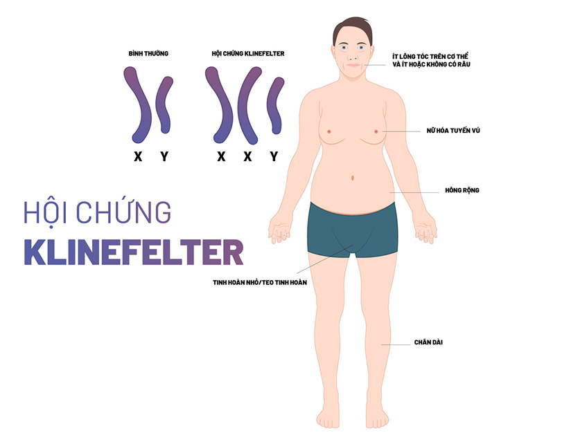 Thông thường, nam giới có 23 cặp nhiễm sắc thể (NST), trong đó một cặp NST giới tính XY. Trường hợp mắc hội chứng Klinefelter có hai nhiễm sắc thể X trong NST giới tính (XXY), gây những bất thường ở hệ thống cơ quan sinh dục, giảm kích thước tinh hoàn, suy giảm các chức năng nội tiết, suy sinh dục. Tỷ lệ tìm thấy tinh trùng ở người bệnh Klinefelter nói chung khoảng 40-50%.